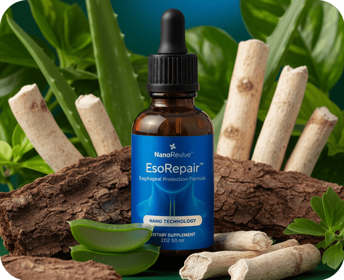 Your esophagus guides every bite and sip. When it's calm and protected, meals sit better, evenings feel quieter, and confidence returns. At NanoRevive™, we go beyond basic soothing. EsoRepair™ by NanoRevive™ delivers precise, gentle support with nano-sized ingredients powered by nanotechnology so the formula contacts the throat on the way down and supports efficient absorption for everyday comfort.